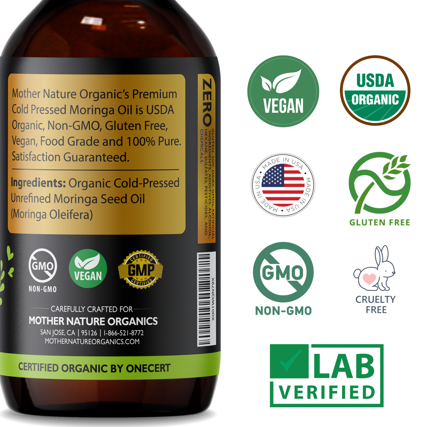 ✓ Guaranteed Purity: Harvested organically in India, our organic moringa oil is Vegan, Unrefined, Gluten-free, GMO-free, Extra Virgin and Additives-Free (Hexane-Free). It is carefully packed in a glass bottle to preserve its quality.